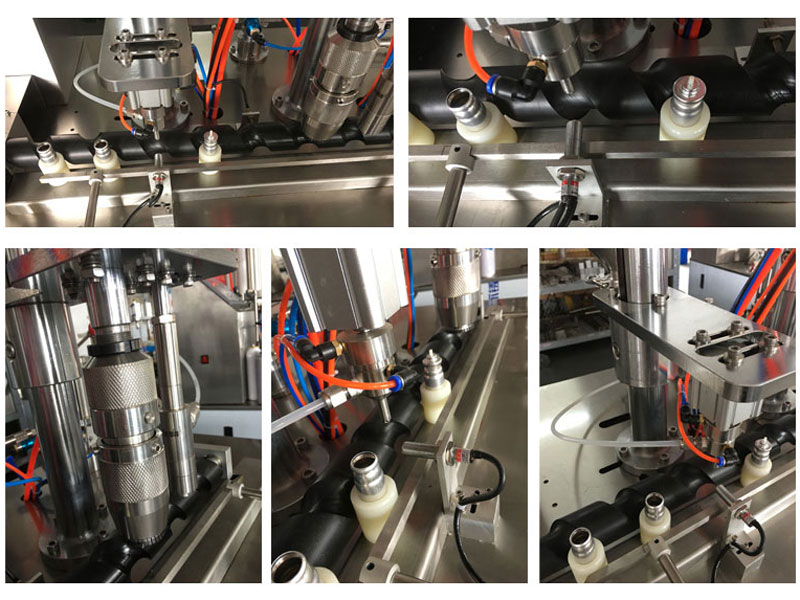 3、灌装部分使用316L不锈钢,适于不同介质的产品;封口机采用导向式封口,封口质量高,有外抓封口型和外抓口内撑口型。